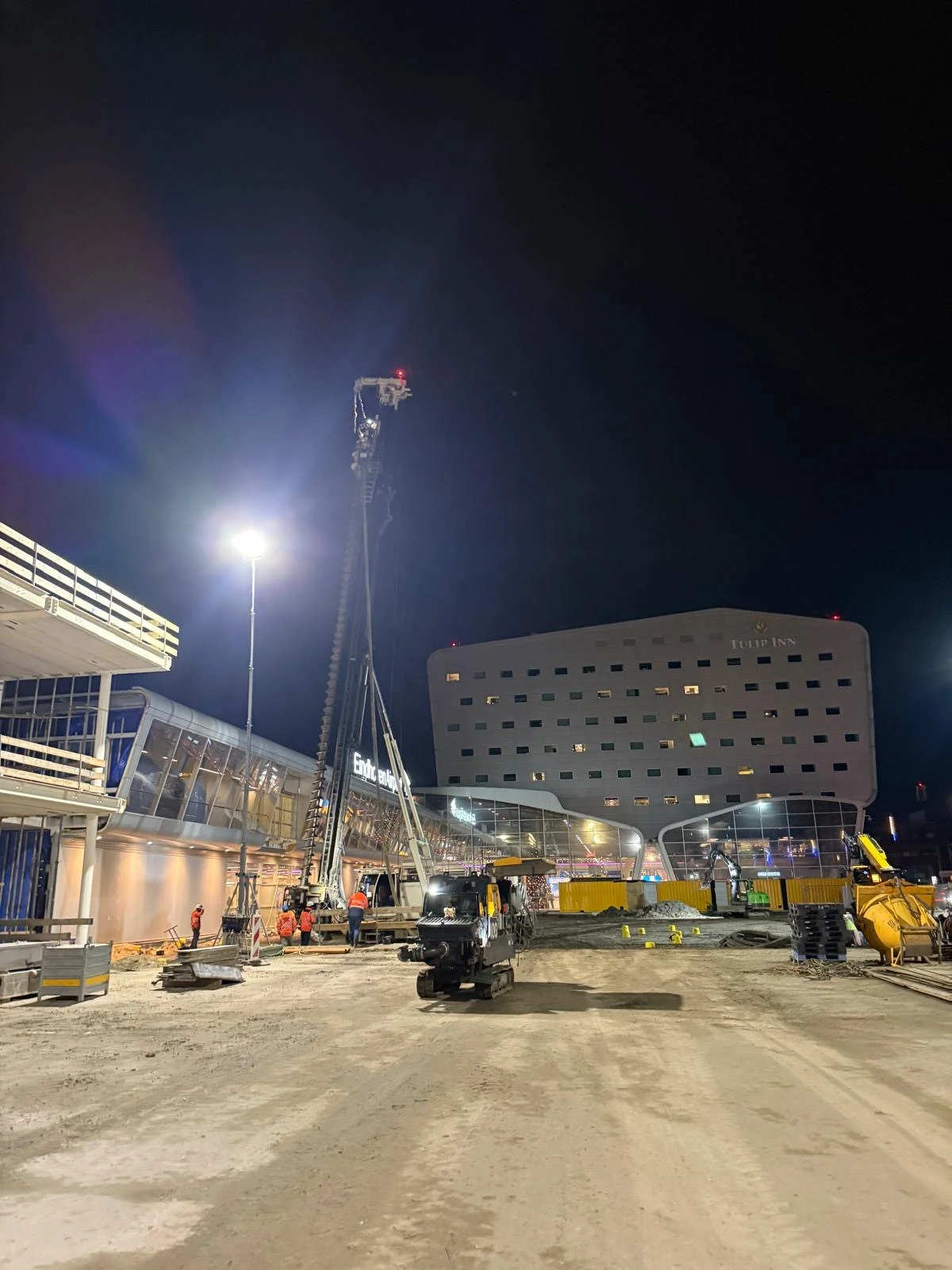 De eerste van de 62 boorpalen voor het entreegebouw zijn de grond ingeboord. Dat gebeurt in de nacht omdat deze werkzaamheden plaatsvinden dichtbij de uitgang van de terminal. De totale klus die na enkele nachten overdag wordt voortgezet, duurt zo'n tweeënhalve week. Naar verwachting worden de eerste kolommen voor het entreegebouw begin april geplaatst. Binnenkort worden dakliggers op de kolommen van de uitbreiding geplaatst. Verder worden leidingen gelegd voor bijvoorbeeld de luchtkanalen en de sprinklerinstallatie. Ook is in de uitbreiding van de terminal (aan airside begane grond) het eerste glas gezet. Verder is het noodtrappenhuis grotendeels gereed.